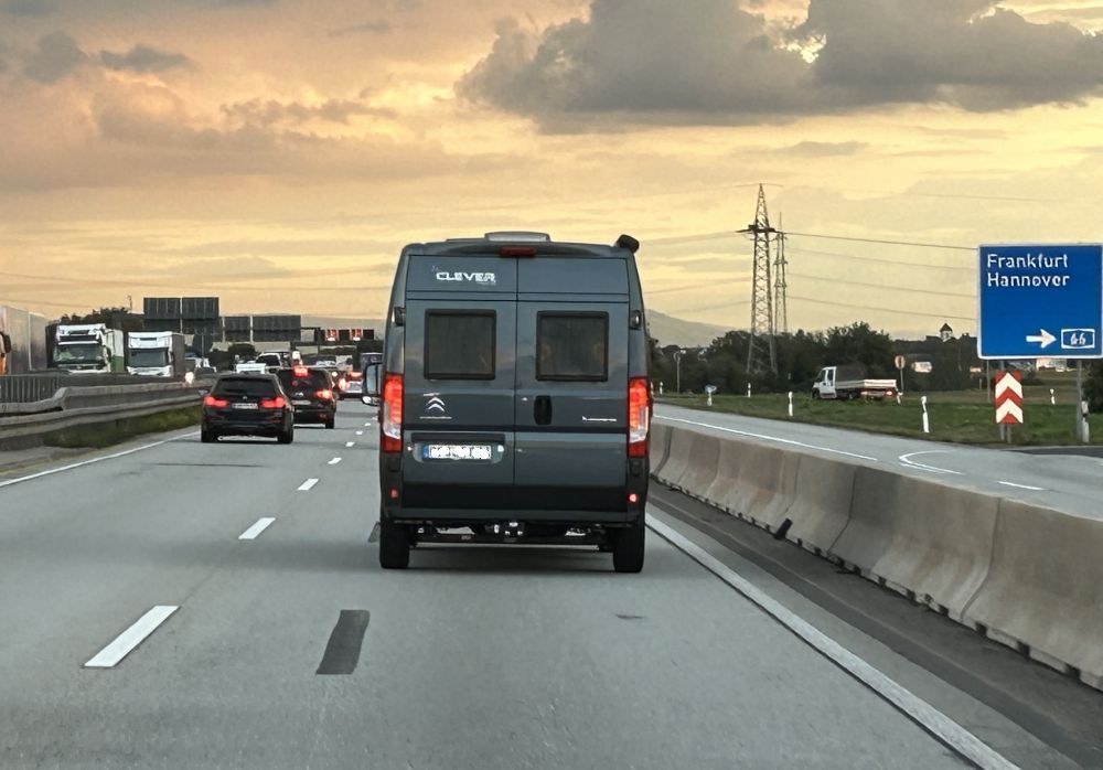 Unser Balu:Modell: CLEVER Celebration 600 Technisches:Citroen Jumper, 5,99 m, 2.2l Diesel 103 kW (140 PS), 3,5t Anhängelast 750 kg / 2500 kg (ungebremst/gebremst) Erstzulassung: 08.2024 Frischwasser 100 l / Abwasser 90 l Tank Truma C4 Combi Heizung mit 10 l Warmwasser Aufbaubatterie 100 Ah LiFePO4 Bett-Liegefläche: 194 x 140 cm Mehr Touren:Tour 0: 2024 Ausprobieren/Einweihung an der Mosel, Hochmoselbrücke, Zeltingen-Rachtig Tour 1: 2025 durch den Harz. Thale - Quedlinburg - Wernigerode - Bad Sachsa - Kloster Walkenried Tour 2: 2025 durch die Niederlande. Kinderdijk - Rotterdam - Leiden - Den Helder - Giethoorn - Dwingeloo/Westerbork Radioteleskop Tour 3: 2025 Cuxhaven - Maasholm Tour 4: 2025 durch die Schwäbische Alp. Esslingen - Blaubeuren - Sigmaringen - Tübingen Erlebnisse/Erkenntnisse zum Fahrzeug:Waum dieses Fahrzeug wie es ist? Wir haben mehrfach einen Kastenwagen ausgeliehen und viel probiert. Z.B. Längsbetten oder Querbetten, Fenster im Schlafraum, Kühlschrank oben oder unter der Arbeitsfläche oder an der Stirnseite. Ausprobieren lohnt sich. Wichtig: alle Angaben hier sind subjektiv und oft reine Geschmacksache. Jeder kann das anders empfinden. Nach zwei Touren nach Schweden, eine nach Dänemark und eine nach Portugal an die Algarve war uns vieles klar. --- Kastenwagen. Ein Kastenwagen war uns wichtig, weil die große Schiebetür ein Sitzen wie auf dem Balkon ermöglicht. Herrlich bei geöffneter Schiebetür (und geschlossenem Mückenschutz) mit einem Glas Wein den Sonnenuntergang anzusehen. Kastenwagen vermitteln ein sehr gutes Sicherheitsgefühl, auch bei Verkehrsunfällen. Das hat uns gut gefallen. Softclose macht die Schiebetür leise zu. Da freuen sich die anderen Camper auf dem Campingplatz. --- Gewicht bis 3,5t. Oft können die "älteren" noch bis 7,5 t fahren. Womo's können teilweise auch bis 4,2 t aufgelastet werden. Aber Achtung: Bisweilen sind dann Besonderheiten erforderlich. Z.B. höhere Maut oder unschöne Tote-Winkel-Warnaufkleber am Fahrzeug. Wir haben auch mal gewogen: vollgetankt, Frischwasser voll gefüllt, Küche voll eingerichtet und Klamotten an Bord, mit Fahrer und Beifahrer alles zusammen abfahrbereite 3350 kg. Das bedeutet genug Reserve für den Fahrradträger und zwei e-bikes und noch einiges im Kofferraum. --- Länge 600 cm war uns wichtig. Das ermöglicht leichteres rangieren auch in Städten. Gerade wenn noch ein Fahrradträger auf die Anhängerkupplung mit drauf soll. Manche Brücken und Fähren messen Fahrzeuglängen und die Gebühren werden danach bemessen. --- Querbetten. Länge 600 ergibt automatisch Querbetten. Das ist schon eine Herausforderung, bei einer Köpergröße von 1,90m und einer Liegefläche von Der Rahmen trägt einfach zu viel auf und man ist mit Kopf oder Füssen im Fenster. --- Kühlschrank oberhalb der Arbeitsplatte. Das erleichtert die Entnahme und die Einsicht in den Kühlschrank. Ist der Kühlschrank unten, krabbelt man öfter mal auf dem Boden herum. Bei Stirnseitenmontage kann man zumindest auch die Schiebetür öffnen und von aussen bedienen. Wir haben uns auf einen oben montierten Kühlschrank festgelegt. --- Badezimmer: Die Nasszelle ist mit einer Schiebetür ausgestattet. Das ist ein großartiger Vorteil gegenüber einer Klapptür, die ständig im Weg ist. Aufgrund der Vollbeschichtung der Wände im Inneren der Nasszelle und aufgrund der Kunststoff/Rolladenschiebetür entfällt der lästige Duschvorhang, der einem stets beim Duschen am Hintern klebt. Fürchterlich. Umso mehr geniessen wir das wunderbar große Bad im Clever Celebration. Das war eine ganz wichtige Kaufentscheidung. Auch hier gilt: wer ausprobieren kann ist besser dran. Bei meinem 1,90 Körpermaß kann man nicht in allen Nasszellen gut stehen und es gibt auch Nasszellen, die sind so eng, dass man kaum an die eigenen Füße drankommt. --- Solar oder nicht? Wenn man die Wahl hat, dann sicherlich ja. Allerdings haben wir kein Solarpanel auf dem Dach. Die Aufbaubatterie ist serienmäßig eine 100 Ah LiFePo4 Lithiumeisenphosphat Batterie. Die ist einer AGM Batterie deutlich überlegen und hält länger durch. (Zugehöriger Ladebooster ist serienmäßig eingebaut). Das hat uns dazu bewogen, zunächst so zu starten und Erfahrung zu sammeln bevor wir investieren/nachrüsten sollten. Dazu bleibt ja noch die Option eine größere Batterie einzubauen (Achtung: Abmessungen sind begrenzt). --- Strom ist immer ein wichtiges Thema. Wir haben sofort bemerkt, dass zuwenig USB Steckdosen eingebaut sind. Sertienmäßig sind das eine im Führerhaus (an der Fahrzeugbatterie angeschlossen) und eine über der Dinette (an der Aufbaubatterie angeschlossen). Dazu kommt eine 12 V Zigarettenanzündersteckdose über der Küche, in die wir sofort einen USB-Adapter eingesteckt haben. Heutzutage werden Handys, Taschenlampen, Laptops u.v.m. per USB geladen. Wir haben daher gleich mal nachgerüstet. Natürlich kann man nicht unbegrenzt viele USB-Ladesteckdosen an die vorhandene Verkabelung anschließen. Irgendwann lösen die eingebauten KFZ-Sicherungen hinter der Aufbaubatterie aus. Aber ein klein wenig geht schon. Wichtig ist eine USB-Steckdose im Schlafbereich. So können Handys auch in Bettnähe aufgeladen haben oder auch ein Tablet PC zum Fernsehen angeschlossen werden. So haben wir neben den Lampen am Bett eine USB-Ladesteckdose abgegriffen. Über der Dinette haben wir an die vorhandene USB-Steckdose über der Sitzbank eine zweite an der Fahrersitzseite montiert. --- Reservestrom/Landstrom finden wir auch wichtig. Dazu haben wir eine Powerstation (Bluetti AC180) mit an Bord. Die beiden 230 V Steckdosen über Küche und Dinette sind nur in Funktion, wenn 230 V Landstrom von aussen eingespeist wird. Einen serienmäßig fest eingebauten Wechselrichter für 230 V gibt es nicht. Sollte man den nachrüsten? Wir haben uns für den Bluetti entschieden. Der ist tragbar und hat auch USB-Lademöglichkeiten eingebaut. Dazu eine Fernbedienung per Bluetooth-App. Das fanden wir universeller.